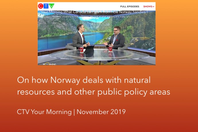Interview at CTV Your Morning on how Norway deals with natural resources and other public policy areas Available here